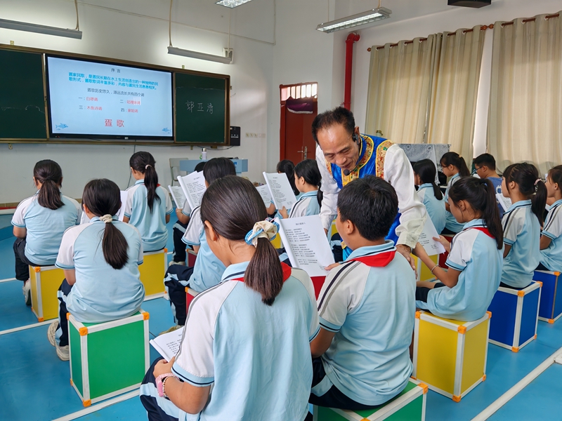 疍家新村中心小学,学生跟老师学唱疍家民歌