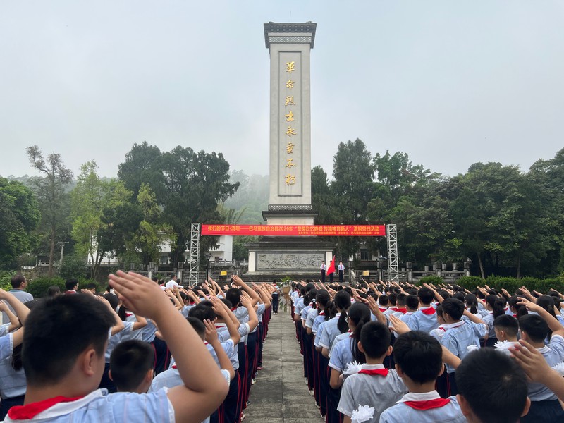 该校德育副校长黄燕发表讲话,深情回顾革命先辈在巴马这片红色热土上的英勇事迹,勉励全体少先队员将爱国情、强国志、报国行融入日常学习生活,努力成长为担当民族复兴大任的时代新人。随后,师生们手持亲手制作的小纸花,缓步绕行烈士纪念碑一周,依次将纸花轻轻敬献于碑前,以质朴行动表达追思。