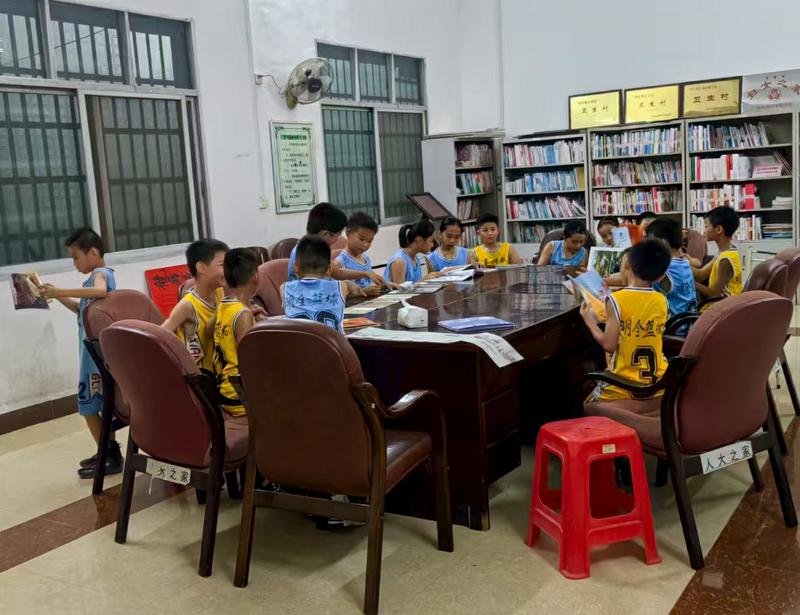 清晨6点,宾州镇勒马村篮球场上已出现村民传球、投篮、奔跑的身影。“自2005年第一块水泥球场建成,篮球就成为了村里的‘粘合剂’。”68岁的韦老感慨道。起初只是农闲消遣,如今已发展成了“月月有赛事、季季掀高潮”的盛况,特别是今年7月18日晚,2025年广西和美乡村篮球赛(村BA)总决赛开幕式在这里上演,篮球击地的声音和现场观众的加油声成为乡村最有活力的节奏。截至目前,勒马村已举办各类篮球赛事400余场。在热火朝天的球场旁,勒马村农家书屋正悄然经历一场蝶变:曾经的安静角落,如今被篮球的热浪唤醒,与球场的“砰砰”声交相辉映的是书屋里愈发清晰的翻书声。“光热闹还不够,还得有内涵!”勒马村党总支部书记韦以庚表示,“赛场人气就是宝贵的资源,为什么不把这份热乎劲儿,引入知识的海洋里?”