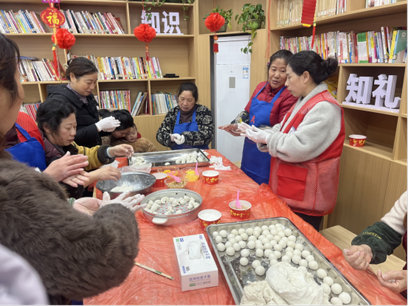3月3日,殷祖镇新时代文明实践所依托殷祖街社区工会驿站书屋阵地,开展“我们的节日·元宵节”主题活动,志愿者与居民群众围坐协作,揉面、包馅、搓圆,动作娴熟有序,欢声笑语中,一颗颗圆润的元宵摆满托盘,尽显邻里同心的温情。