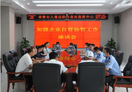 近日,河北黄骅出入境边防检查站组织召开加强企业自管协管工作座谈会,面对面探讨口岸管控措施,进一步推进港口企业协管自管制度落实,提升口岸综合管控效能。
