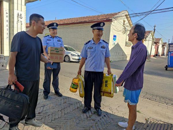 该站民警走进黄骅市东十街、万泰家园等地,为两名残疾困难群众送去牛奶、大米、鸡蛋等日常生活用品,与困难群众围坐在一起拉家常、叙冷暖,详细了解他们的身体和家庭状况、生活上存在的困难等情况,尽最大努力为其排忧解难。