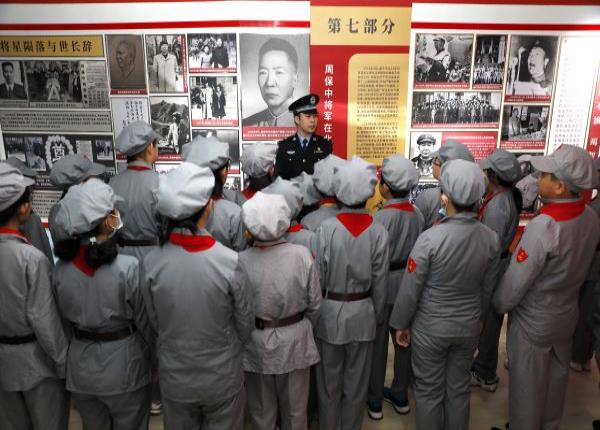 2022年9月16日,九一八事变纪念日前夕,吉林图们出入境边防检查站移民管理警察来到位于图们国门红军小学的“周保中将军纪念馆”,共同缅怀抗日英雄,为孩子讲述东北抗联战斗故事,开展爱国主义教育。