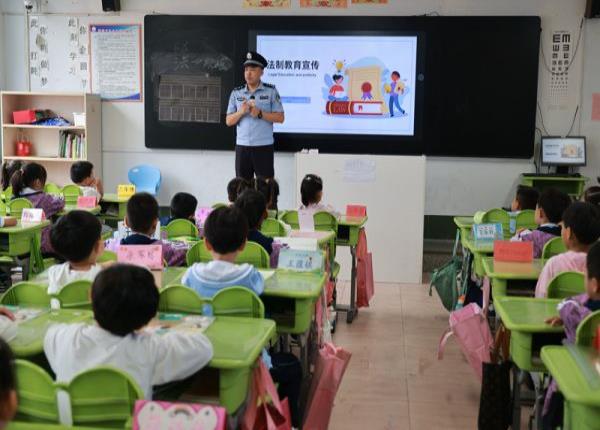 9月16日,山东出入境边防检查总站潍坊出入境边防检查站民警走进寒亭区实验小学,为师生送上新学期法制教育第一课。
