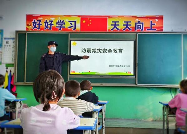 9月19日,新疆克州边境管理支队乌恰边境管理大队膘尔托考依边境派出所移民管理警察走进辖区中心小学开展“防震减灾进校园 撑起安全保护伞”安全教育活动。