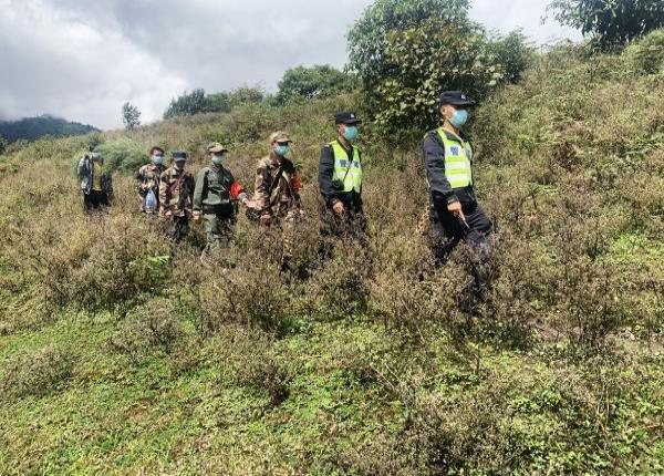 “我不熟悉的地方,就要亲自去走一走,看一看,只有对辖区边境要素烂熟于心,才能更好地开展边境管控工作。”勒墨警务室民警陆凯说道。9月20日,称杆边境派出所勒墨警务室民警辅警联合护林员、专职联防员组成巡逻踏查小组,由民警陆凯带队,对中方一侧称杆乡、洛本卓乡与缅甸交界的边境一线开展巡逻踏查工作。踏查过程中,巡逻踏查小组现地查看地形地貌,记录每条边境小道的通行情况,地理坐标,更新、采集边境小道最新走向。“边境线上的山水树木都是踏查的重点,巡逻踏查不是走过场,不仅要看在眼里,还要牢牢刻在心里!”作为一名党员,一名退伍军人,辅警胡波华这样看待此次巡逻踏查工作。