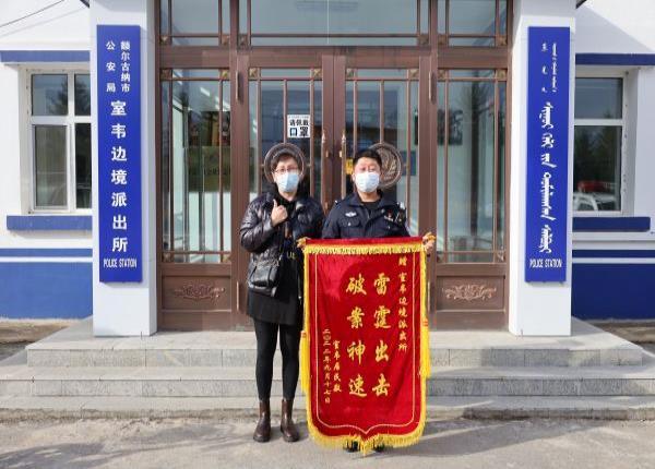 “真是太感谢你们了,要不是你们,我的钱就真找不回来了。”9月22日,辖区居民边女士带着一面写着“破案神速,雷霆出击”的锦旗,急匆匆来到呼伦贝尔边境管理支队室韦边境派出所,表达自己对民警的感激之情。