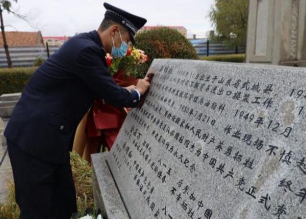 为大力弘扬英模精神,深切缅怀革命先烈。在第九个全国烈士纪念日来临之际,9月30日,阿日哈沙特出入境边防边检站组织民警赴驻地烈士陵园开展烈士祭奠活动。