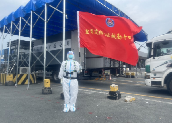 在广阔的查验场地上,还有一个走路稍慢的“大白”,由于患有腰椎疾病,民警张绪垚在穿着防护装备走路时,显得比较吃力。在开展闭环勤务前,他不顾大家的劝阻,毅然决然地选择第一期报名参加。他说:“我这个腰椎也没啥事,还能走路,要说困难吧,谁家里还没有困难的事情呢”。