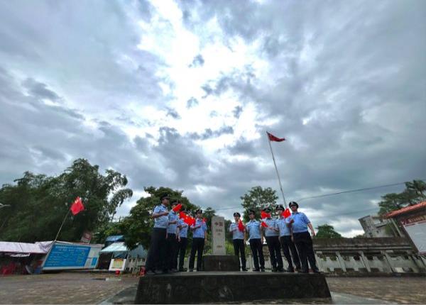东兴出入境边防检查站峒中分站开展“描界碑、迎国庆”主题活动