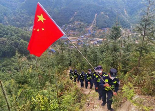 清晨的山中,大雾弥漫,能见度极差,排头的民警举着手电,手里拿着一把当地的户撒刀,不时地砍去巡逻道上生长过于茂密的杂草,不一会儿,两只裤脚便已被晨露浸透防护服打湿,冰冰地贴在腿上,很不舒服。巡逻队的执勤人员们却不以为意,只是相互叮嘱道:“一定要小心!别被树枝勾破了防护服,这么湿润的地方是蚂蟥蛇蚊的天堂,被咬到就麻烦了。”继续往前走,巡逻道慢慢开始变得狭窄陡峭起来。若是有人第一次走,肯定是打退堂鼓了,但巡逻队中没有人多言,快速有序地向上攀岩,紧锣密鼓地开展着巡边踏查工作。执勤人员告诉随行的人:“去年7月份的暴雨导致山体多处滑坡,巡逻道有些地方都没有路了,现在我们走的多了,又重新踏出来了。”“巡逻路上有什么困难吗?”随行人员问道。执勤民警杨明显想了想,嘿嘿地笑道说:“实在有,那就是费鞋!保障边境一线安全是我们的责任,职责范围内的事说什么困难呢。”