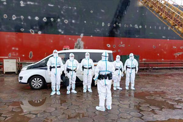 “两点一线”闭环式勤务模式,24小时全力保障,单日连续一线执勤6小时以上,往返相距30余公里的码头泊位数次,防护服内汗流浃背,常常食无定点、睡无定时……在执行任务过程中,“党员突击队”民警们克服困难、忠诚履职,奋战在岗位一线,守护着国门平安。
