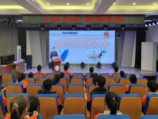 民警采取集中宣讲、案例解析及互动问答等形式,为同学们详细讲解了《治安管理处罚法》《未成年人保护法》等相关法规条文,列举了当前网络诈骗活动的主要特征和防范常识,现场展示说明了各类毒品仿真实物,以及毒品的严重危害。提醒同学们不要随便与陌生人接触,不食用来历不明食物饮品,教育引导同学们要克服好奇盲从心理,自觉学法、知法、守法、用法,树立正确的人生观、世界观、价值观,提高自身安全防范意识,争做遵纪守法的好学生。