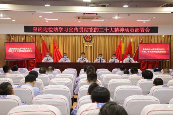 为推动学习宣传贯彻党的二十大精神不断往心里走、往深里走、往实里走,激励各级党组织和广大党员民警奋进新时代、建功新征程,忠实履行好新时代移民管理使命任务,11月16日上午,皇岗出入境边防检查站召开学习宣传贯彻党的二十大精神动员部署会。该站党委班子成员、部门以上领导和机关全体民警,各执勤队主要负责同志和民警代表参加会议。
