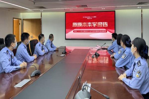 感悟真理畅谈体会。交流互动环节,与会党员民警深受党的二十大精神鼓舞触动,纷纷就个人学习心得进行了发言交流。“党的二十大是一次高举旗帜、凝聚力量、团结奋进,具有里程碑意义的重要会议,我们要深刻领会‘五个牢牢把握’‘四个始终’‘三个务必’的要求,坚定捍卫‘两个确立’、坚决做到‘两个维护’,全面贯彻党的二十大的实践要求,忠实履行新时代移民管理使命任务。”正在闭环执勤的党支部书记赖文闻通过视频连线如是说。