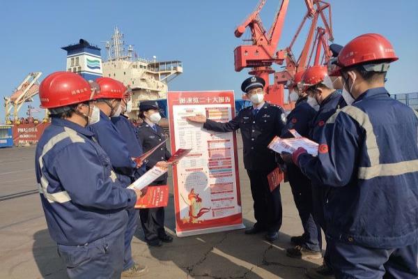 黄骅出入境边防检查站开展二十大精神进码头宣讲活动