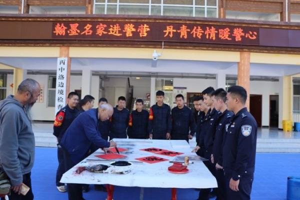 活动最后,该站站长陈晓亮讲道:“邀请翰墨名家进警营活动是丙中洛边境检查站党支部秉持“文化育警、文化励警、文化律警、文化强警”的建设理念,把警营文化建设作为思想政治工作的重要抓手,以全站民辅警喜闻乐见的形式,将中华传统文化融入强警文化,进一步筑牢忠诚警魂、凝聚警心斗志、丰富警营生活、促进警地交流,希望……”