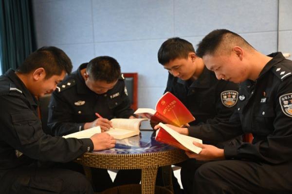 “党的第二十次全国代表大会描绘了全面建设社会主义现代化国家、全面推进中华民族伟大复兴的宏伟蓝图。”云南怒江花桥坝边境站迅速以多种形式组织专题学习党的二十大精神,何杨军在完成“规定动作”的同时在勤务之余不断通过人民网、学习强国等平台资源进行党的二十大知识学习,查缺补漏提高认识,主动向文化程度高的民警请教,并通过抓紧碎片化时间“微学习”,阅读原文悟原理等方式深入了解党的二十大报告精髓。