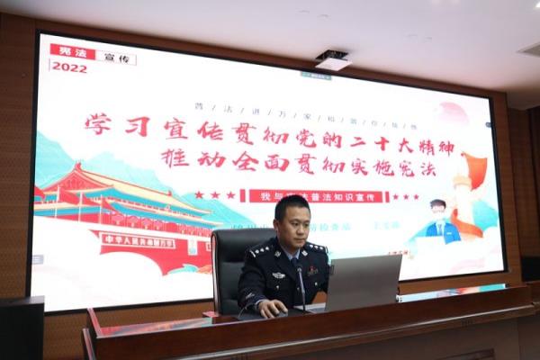该站紧扣“学习宣传贯彻党的二十大精神,推动全面贯彻实施宪法”活动主题,通过开展集中学习和座谈交流、使用 “辽宁普法公众号”进行宪法知识竞答、利用LED屏幕循环播放宪法宣传视频、为港口企业及代理公司员工开展线上普法宣讲等形式,引导广大民警和人民群众自觉维护宪法权威、捍卫宪法尊严,知法懂法、依法维权、惩治犯罪,做法律的忠实崇尚者、自觉遵守者、坚定捍卫者,推动形成尊法、学法、守法、用法的良好氛围。