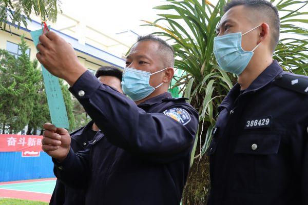 活动现场,一盏盏红灯笼下悬挂着一条条彩纸制作的“谜语”,民警们看着层出不穷、花样繁多的灯谜,纷纷上前一展风采,同志们积极开动脑筋探讨知识点,争相竞猜,民警们你一言、我一语,有的面对难题冥思苦想,有的胸有成竹脱口而出。