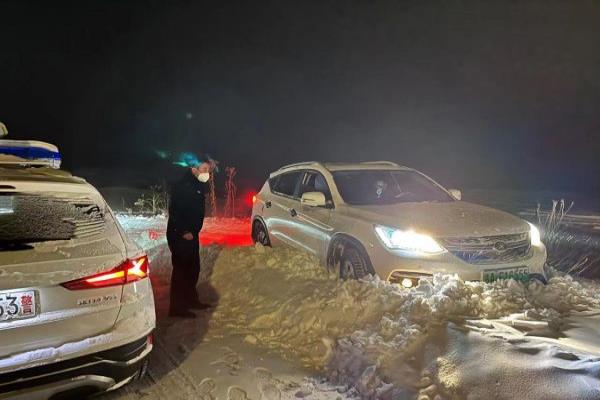 12月26日21时许,白山边境管理支队抚松边境管理大队所属单位民警在巡逻至鲁能胜地盘山路上时,发现一辆白色SUV冲下路基,深陷雪中动弹不得,眼看就要滑下陡坡,情况十分危机。民警立即查看驾驶员情况,所幸驾驶员并未受伤,但驾驶员多次尝试都未成功将车驶出。路基下积雪有半米多深,由于没有清雪工具,民警用腿和脚趟平了遇险车辆前方的积雪,并对车轮附近积雪进行了清理,后在民警推车助力下,成功将车从雪窝中驶出。