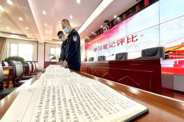 在评比活动现场,民警们相互学习、取长补短,交流讨论气氛融洽,达到了“以比学、促提升”的良好效果。重点检查学习内容记录是否齐全、字迹是否工整、条理是否清晰等,着重对笔记内容、学习进度、个人体会进行评比。从评比情况看,民警们的学习笔记和心得体会既有重点原文摘抄,又有学后所思所悟,既有集中学习,又有个人自学,体现了党员对学习的重视程度。最后评选出记录规范、字迹工整、知识点梳理详实、个人体会深刻的优秀笔记,并对民警进行了表扬。
