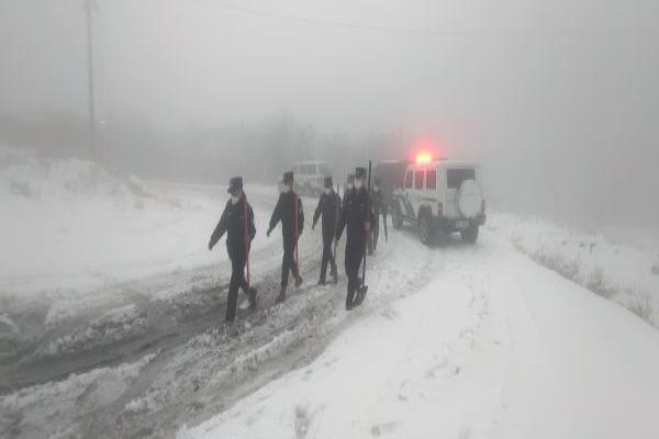 下午3点,片马边境派出所接到群众求援电话,称在外出过程中车辆被困,需要警方援助。接到消息以后所领导立即集合队伍,让民警、辅警们准备好防滑链、铁锹、铲子等工具前往援救。