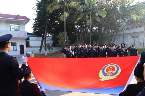 2023年1月9日9时,陇川边境管理大队全体民辅警着装严整,队列整齐,随着“整理着装、稍息、立正”等口号的喊响,升旗仪式正式开始。三名护旗手警姿挺拔、气宇轩昂,迈着坚实有力的步伐走向国旗台,全体人员用坚定的目光迎警旗,警察节的序幕在升旗仪式中正式展开。