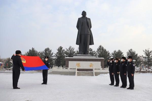 1月9日,为喜迎第三个“中国人民警察节”,吉林白山边境管理支队兴隆边境派出所民警来到陈云公园举行重温公安机关人民警察誓词活动。