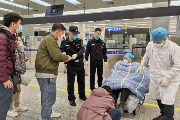 1月10日早上,皇岗出入境边防检查站执勤十五队民警李俊景在福田口岸出境大厅巡查时,发现有几个人推着一位坐着轮椅盖着棉被的老人,遂主动迎上前询问情况。经了解,该老人为香港人,今年87岁,患有疾病导致腿脚麻木不能站立。受疫情影响长时间由其在内地女儿照顾治疗的他,获悉恢复通关的利好消息后,便决定让女儿和孙子陪同其从江西赣州赶来深圳,准备经福田口岸出境前往香港就医。赣州的医护人员考虑到老人身体状况,也与老人家属联系深圳蓝天救援队协助,一路共同陪护在老人身旁。张明昕副队长闻悉情况后,及时安排民警提供竭尽所能的帮助和照顾,第一时间开启“特别通道”,优先为老人一家人办理出境查验手续,并报告现场值班室协助联系港方于桥头分界线接应,竭诚为老人安全快捷通关提供有温度、高效率的服务。