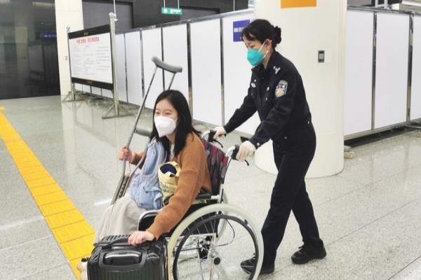 原来,当天傍晚,福田口岸出境大厅人头攒动,迎来一波客流小高峰。正在快捷通道前引导的皇岗边检站执勤十四队民警发现一位手持拐杖、坐着轮椅、携带大量行李的女旅客面露愁容,神情焦急的左顾右盼,遂主动迎上前询问情况。经了解,该女士姓李,今年40余岁,内地残疾人,是次独自出行急需前往香港就医。因路途辗转和行动不便,抵达口岸时突发身体不适,正耽心时间紧张可能会错过之前约好的术前检查。