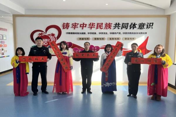 民警和书法爱好者挥毫泼墨,用一幅幅满载祝福的春联,把浓浓的“年味”和新春的祝福送给辖区群众,大家连连称赞,争先恐后请“福”回家。随后,民警带来了歌曲《红太阳照边疆》,辖区朝鲜族群众也参与其中,大家载歌载舞,将活动氛围推向高潮。台上表演精彩,台下欢声笑语,节日气氛浓郁,悦耳的歌声,动人的舞姿,给辖区群众带来了一场视听盛宴。