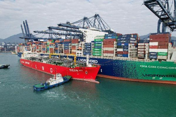 1月18日,新春佳节来临之际,我国自主研制的全球最大液化天然气(LNG)运输加注船“海洋石油301”轮搭靠全球最大集装箱船舶“达飞协和号”,在盐田出入境边防就站安全高效的保障下,采取“无接触”供气方式,历经5个小时,向其加注约6000立方米LNG燃料。