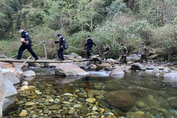 巡逻人员克服草木丛生、路途坎坷、距离遥远等困难,上高山,过河谷,钻密林,过吊桥,用双脚丈量安全,巡逻的脚印布满了整条边境线。