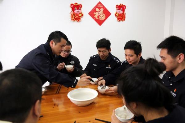 宁波出入境边防检查站综合执勤二队民警自己下厨,为执勤归来的值班人员准备了热气腾腾的汤圆,以最淳朴的方式表达着对执勤民警的关怀,一口口甜蜜的汤圆,一句句温馨的交谈,让一线执勤民警在寒冬下燃起暖暖的心炉,得到家的温暖。