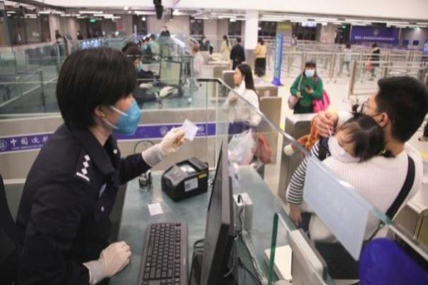 边检民警邓优高效快捷为首批经皇岗口岸入境旅客办理查验手续。马东桂摄