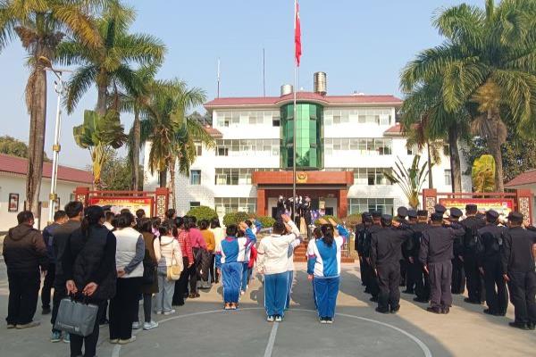 清晨的薄雾,还带着丝丝寒意,却挡不住学生们内心的激动与喜悦。警营开放活动在庄严的升旗仪式中拉开序幕,五星红旗在边境一线冉冉升起,全体人员齐唱国歌,嘹亮的歌声中满是移民管理警察的忠诚担当,人民教师的爱岗敬业、学生家长的民族自豪,少年儿童的爱党爱国。