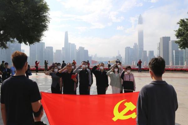 循路而上,登上莲花山顶,气宇轩昂、大步前行的邓小平同志雕像矗立在山顶广场中央。该队党员民警们在小平同志雕像前深深鞠躬,向一代伟人致敬;回首俯瞰深圳市区日新月异的美丽景象,共同回顾改革开放波澜壮阔的非凡历程;高擎党旗,重温入党誓词,铿锵誓言句句发自肺腑,字字掷地有声,宣示着每位党员坚定理想信念、投身改革发展的强大决心和意志。