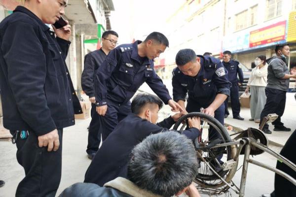 【镜头一】路遇骑行老人流落街头,执勤队民警暖心伸出援手