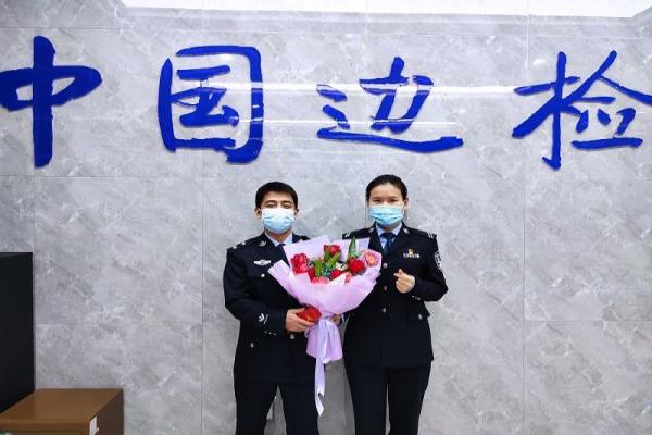 武帝豪和董秀丽相识于军旅,一起在国门下挥洒着青春汗水,后来部队转制,迷彩绿变成了藏青蓝,他们也从并肩作战的战友成为了亲密无间的夫妻,组成了一个“双警家庭”。夫妻俩都在执勤一线工作,24小时值班坚守,武帝豪负责码头的日常巡查,董秀丽则在报检室负责办理出入境边防检查手续,他们在各自的岗位上兢兢业业工作,有时一天到晚见不到一次面、说不上一句话。“国门无小事,每一项工作都必须认真对待,不能有丝毫差错。虽然平时交流很少,但我们彼此都相互理解。”董秀丽说。