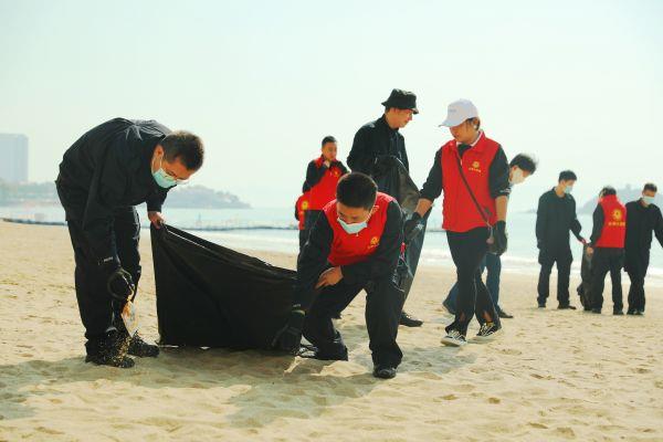 活动中,志愿者们先到海边绿道上集结,在进行了充分的热身之后,他们拿上垃圾袋等工具来到沙滩正式开启“捡跑”,一边走,一边将沙滩上的各类垃圾一一捡起,放进垃圾袋。他们眼观六路,见“圾”行事,将沿途沙滩、草地里的废纸屑、烟头、塑料瓶等垃圾“收入囊中”,同时积极向周围游客宣传“捡跑”公益行动理念,他们的红马甲与湛蓝海水交相辉映,形成了一道美丽的风景线。