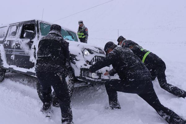 途中,救援民警与被困群众联系上后问询其状况,得知该群众为吉伍工地区务工人员,因其食物紧缺,原计划于14日驾驶车辆返回镇上,但因暴风雪滞留在工地,于15日看天气逐渐放晴,便尝试驾车返回镇上,但车辆行驶至盘旋山道山顶处,暴风雪突袭,该群众被困于山顶,左右难行。