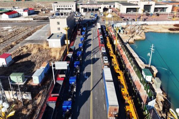 入春的口岸,一辆辆重型卡车的轰鸣声响彻天际,位于中国与哈萨克斯坦边境的新疆塔城地区巴克图口岸一派繁忙。