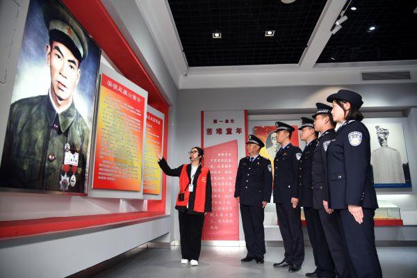 在烈士纪念碑前,全体党员肃立默哀,向革命先烈敬献了花篮和鲜花,寄托对革命先烈的深深哀思和崇高敬意。随后,讲解员带领全体党员民警参观杨根思纪念馆陈列展览,重温抗战的烽火岁月;聆听先辈的英雄事迹,重温“三个不相信”的铮铮誓言;最后,全体党员面对鲜红的党旗,高擎右拳,举行了重温入党誓词仪式,一句句铿锵有力的誓言在陵园里久久回荡。