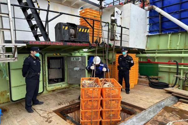 首艘俄罗斯捕蟹船满载50吨野生螃蟹靠泊象山 宁波边检高效监护保障快速通关