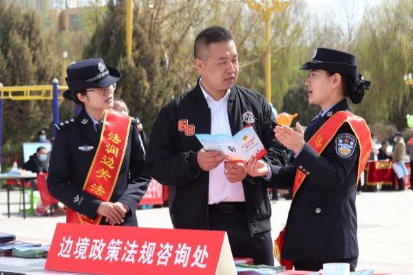 4月7日,新疆出入境边防检查总站哈密边境管理支队联合老爷庙出入境边防检查站、市司法局等多家单位在哈密市伊州区时代广场集中开展“法润边关 法治同行”主题普法宣传活动。