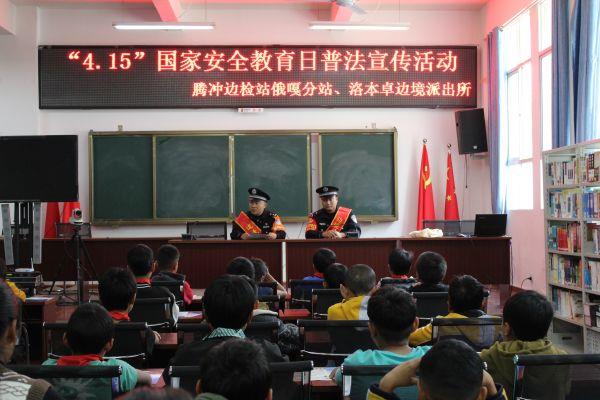 党建联合聚力,共建共享促发展。联合腾冲出入境边防检查站俄嘎分站开展“4·15国家安全教育日”活动,“边管+边检”把党建联创联建工作与推进全国法治建设等工作相结合,根据普法强基补短板、法治宣传固边防等活动部署要求,洛本卓边境派出所、腾冲出入境边防检查站俄嘎分站民警深入辖区人员密集场所,以“摆摊”式普法为来往群众带来了一场激动人心的法治宣传活动。