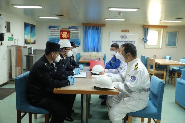 登临检查过程中,三家联检单位按照“信息互换、监管互认、执法互助”的要求,重点检查了船舶证照、航行日志、船员身份信息、健康申明卡核验和体温监测等情况,各联检单位根据检查情况分别出具相关文书,办理相关手续,顺利完成联合登临检查任务,做到“一件事一次办、多件事联合办”,有效节约船舶运营时间,提高了船舶出入境查验和码头周转效率。