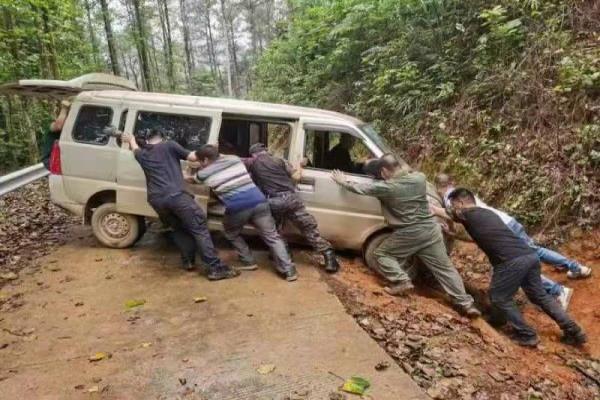 当天中午13时15分许,山子抵边警务室民警陈浩和辅警岑毅、黎永胜驾驶警车沿边境巡逻道开展例行巡逻,途径凭祥市友谊镇隘口村山子平台路段时,发现一辆银灰色的面包车侧倾在边境巡逻道边的山沟内,司机在路边无助的观望。民警立即停车并上前查看情况,通过询问驾驶这台面包车的司机李恒了解到,他是隘口村山子屯人,当天中午吃完午饭后,驾驶自家的面包车到友谊镇购买化肥,在途经山子平台路段时,由于路滑,加上处置不当,导致车辆侧滑掉进路边的山沟里,幸运的是人没有受伤。由于该路段没有手机信号且距离最近的村屯也有六公里多,李恒已经被困在这里半个多小时了。