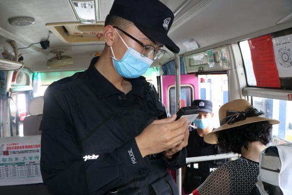 戴培尧正在核查过往旅客
